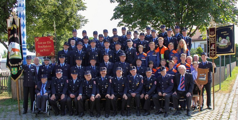 1976 feierte unsere Wehr das bislang größte Fest ihrer Vereinsgeschichte. Das 100-jährige Jubiläum mit Fahnenweihe, dessen Höhepunkt war zweifellos der farbenprächtige Festzug von Kirchseeon-Dorf zu unserem Patenverein Kirchseeon-Markt und zurück.